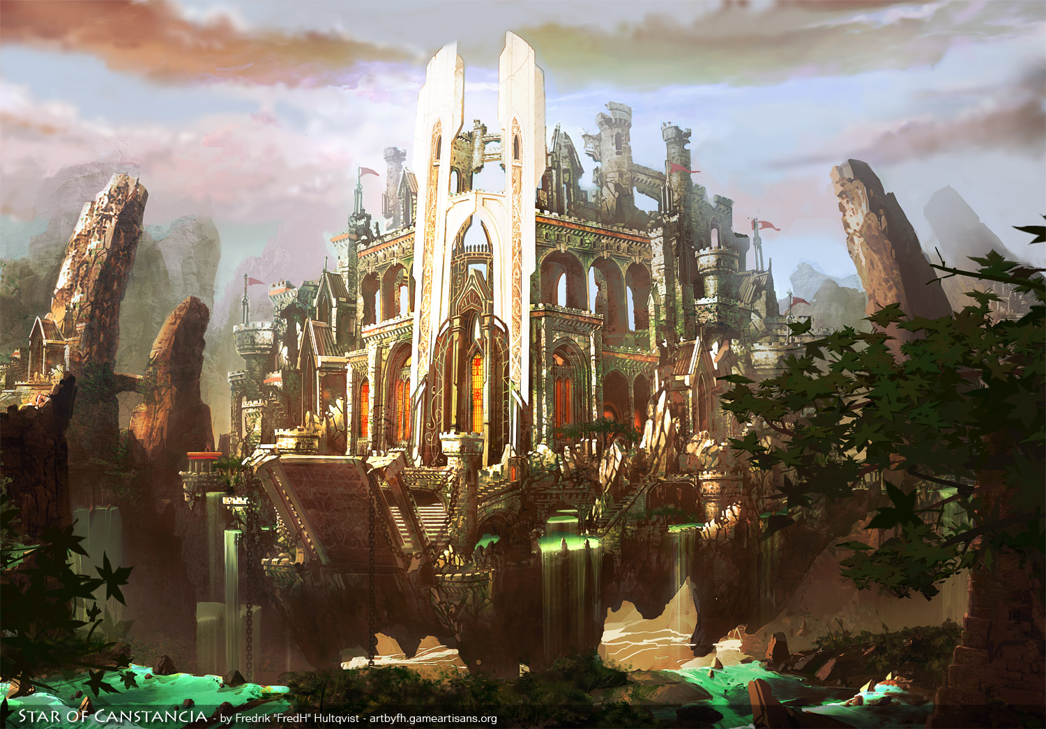 A concept of a flying citadel originally created for a GA concept art mini challenge. The piece was later revised as my skills with colors increased.